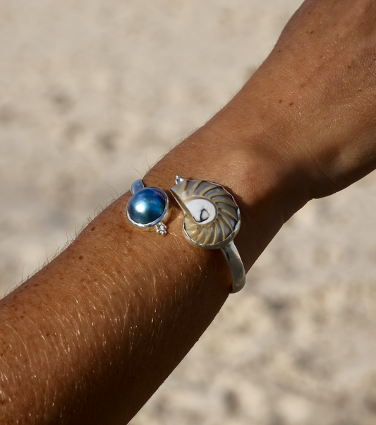 Pearlescent Nautilus Shell and Mabe Pearl Cuff