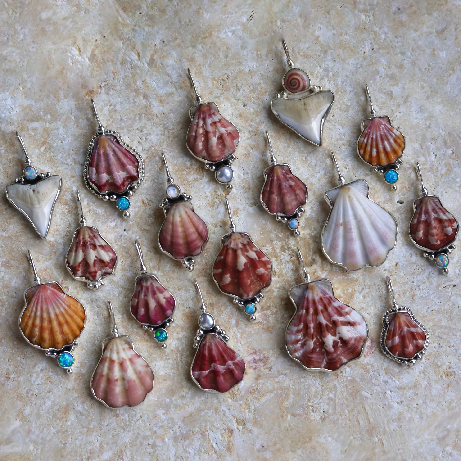 The Oasis Collection is deeply inspired by the ocean and its natural textures, tones, and organic forms. This collection features Japanese Decatopecten shells, Hawaiian Sunrise shells, Australian Hebrew and Nautilus shells, as well as Fossilised coral and shark teeth. Each element has been carefully hand selected for its unique shape, surface, and colour, celebrating the raw beauty formed through time. Designed to feel sun-warmed and grounded, the Oasis Collection embraces imperfection and individuality, with no two pieces ever exactly the same.